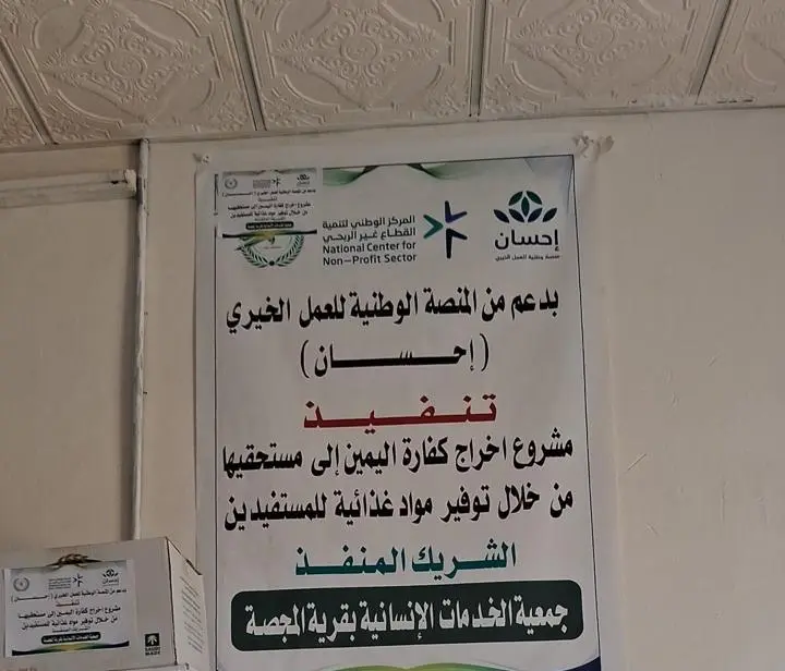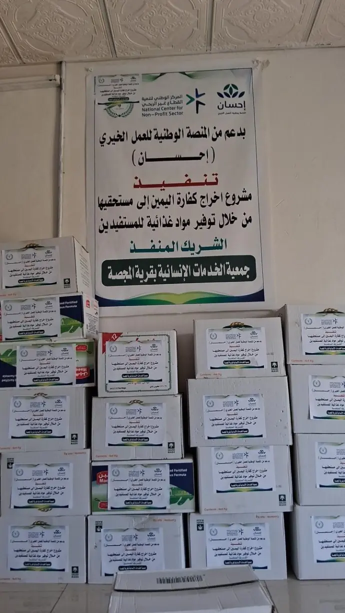 بدعم سخي من #منصة_إحسان للعمل الخيري #جمعية_الخدمات_الانسانية بقرية_المجصة تنفذ مشروع اخراج كفارات اليمين إلي مستحقيها من خلال توفير مواد غذائية للمستفيدين بمبلغ إجمالي (300000) ريال لعدد 3000أسرة